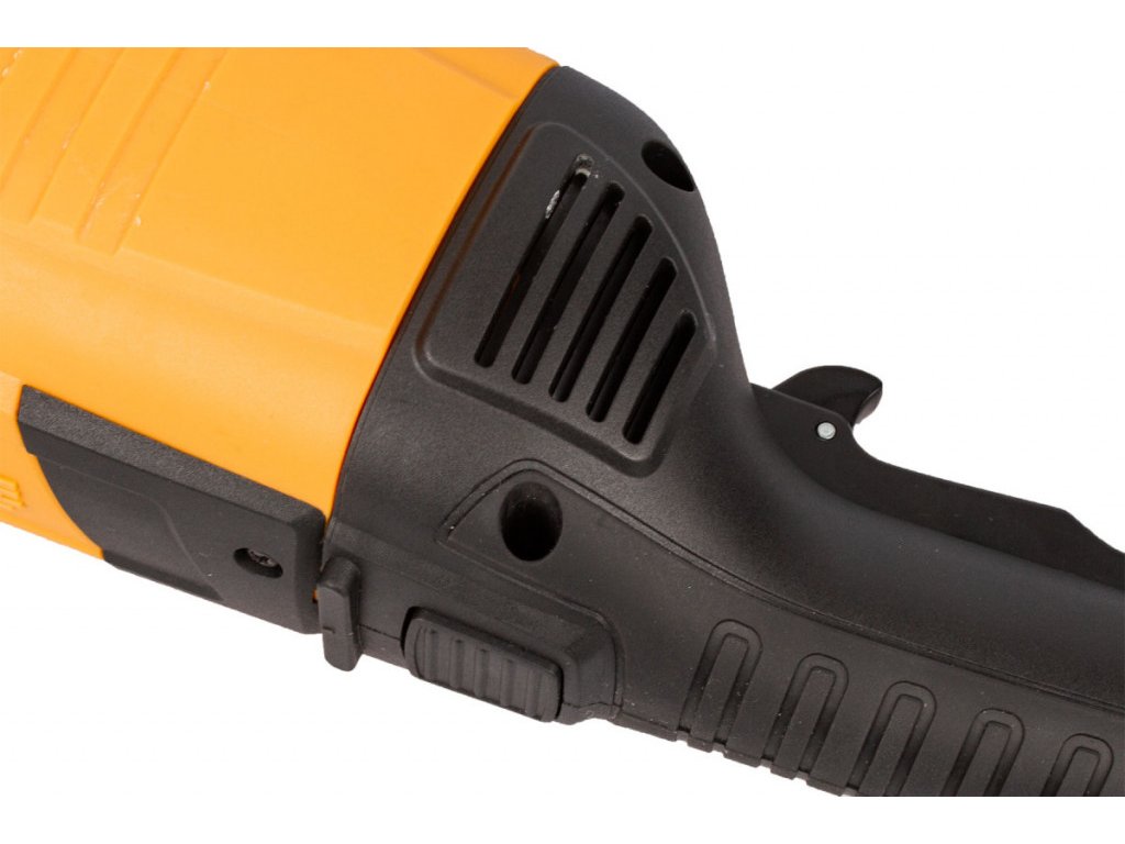 - Prodloužené tělo brusky o polohovatelnou rukojeť s dlouhým vypínačem pro pohodlnou práci.