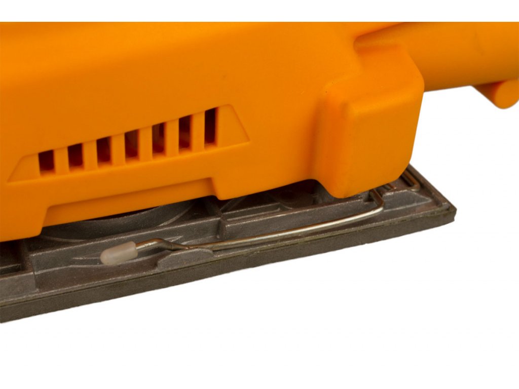 Na brusku s rozměry základny (DxŠ): 187x90mm lze přichytit brusný papír o délce cca 237 mm a šířce 90 mm. Výměna a uchycení brusného papíru probíhá za pomoci svorkového systému. Během práce tak dokážete rychle vyměnit opotřebovaný brusný papír nebo papír jiné hrubosti dle potřeby.