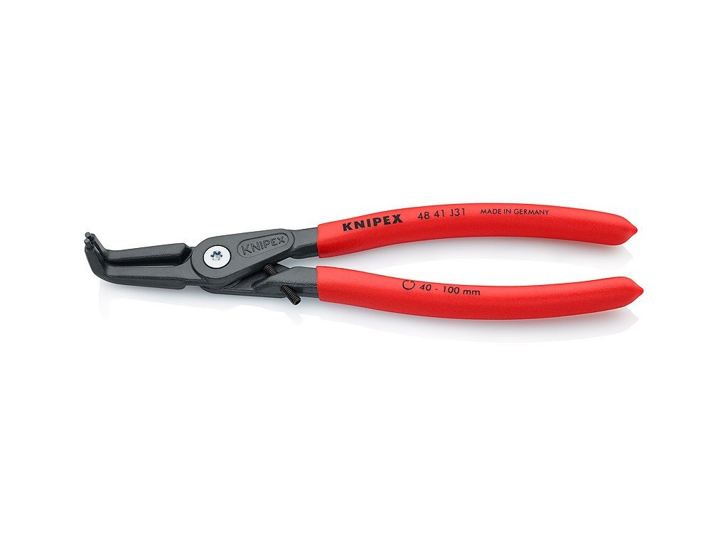 Vnitřní zahnuté kleště o délce 210 mm na pojistné kroužky od německého výrobce Knipex. Zahnutí 90°. Rukojeť potažena plastem, který brání sklouzávání. Snadná a bezpečná montáž díky přesně lícujícím, nasazeným a nalisovaným hrotům z vysoce zhuštěné pružinové oceli poskytují vysokou míru zabezpečení proti přetížení, např. při demontáži uvázlých těsnicích kroužků. Velké dosedací plochy a poloha hrotů znesnadňují odskočení kroužků. Hroty jsou při jednorázovém přetížení o 30 % stabilnější oproti běžným kleštím, současně umožňují lepší přístupnost při montáži. Při dynamickém zatížení vydrží hrot až 10 x déle.
