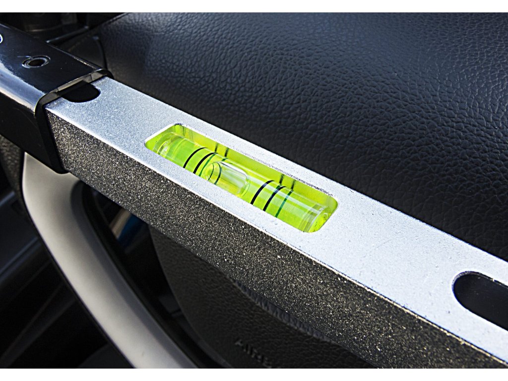 Přesná vodováha určená pro seřízení geometrie volantu při nastavování geometrie kol a při práci v oblasti sloupku řízení.