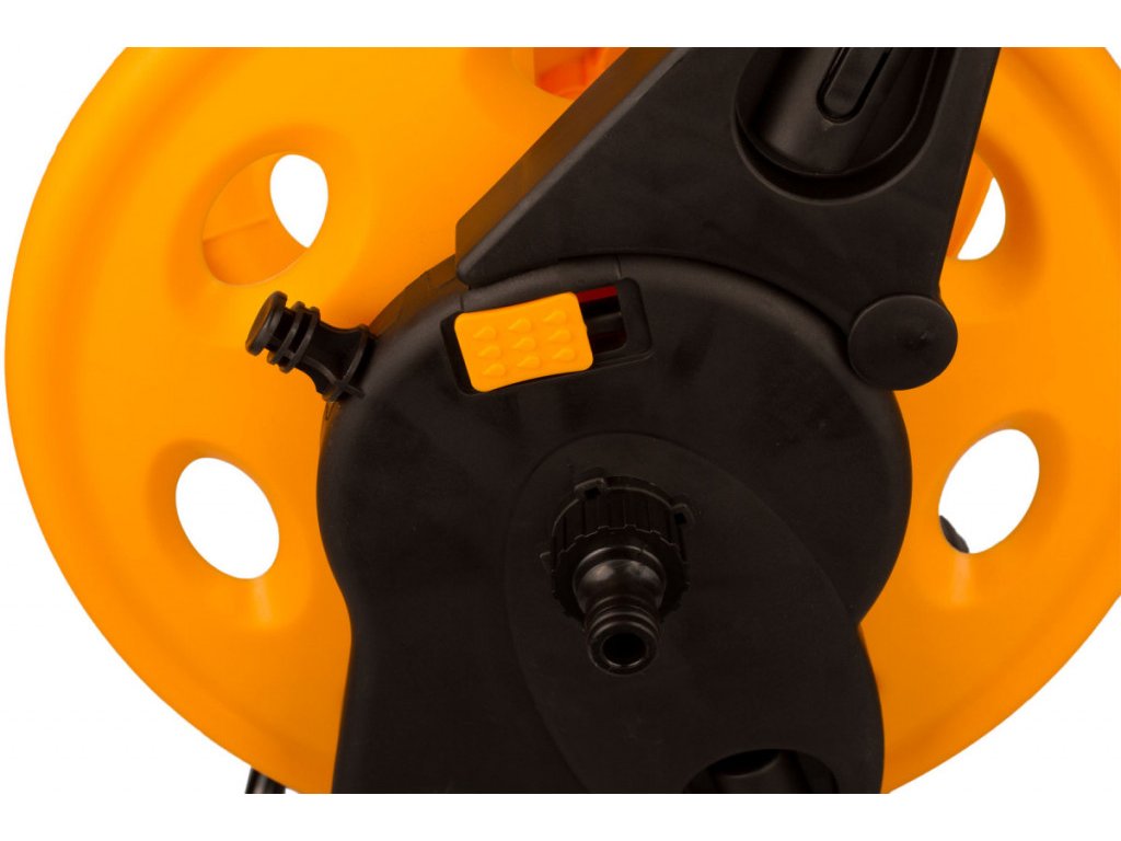 Vozík na zahradní hadici disponuje bubnem pro navinutí až 45 m hadice velikosti 1/2" (13 mm).