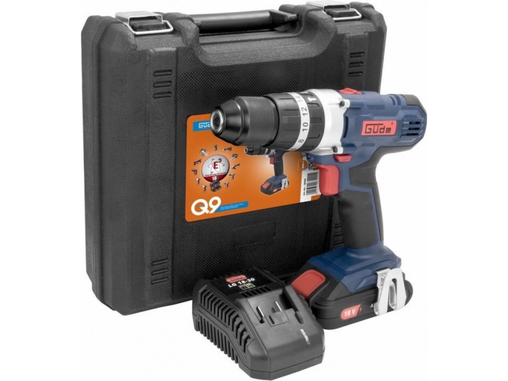 Vybavení: Li-Ion akumulátor 18 V/2,0 Ah; nabíječka 3,0 A/h; sada vrtáků, 6dílná (HSS; Ø 1,5-2,5-3,0-4,0-5,0-6,0 mm); sada bitů, 6dílná (Cr-V; Ø 5-6 mm, PH1, PH2, PZ1, PZ2); plastový transportní kufřík.