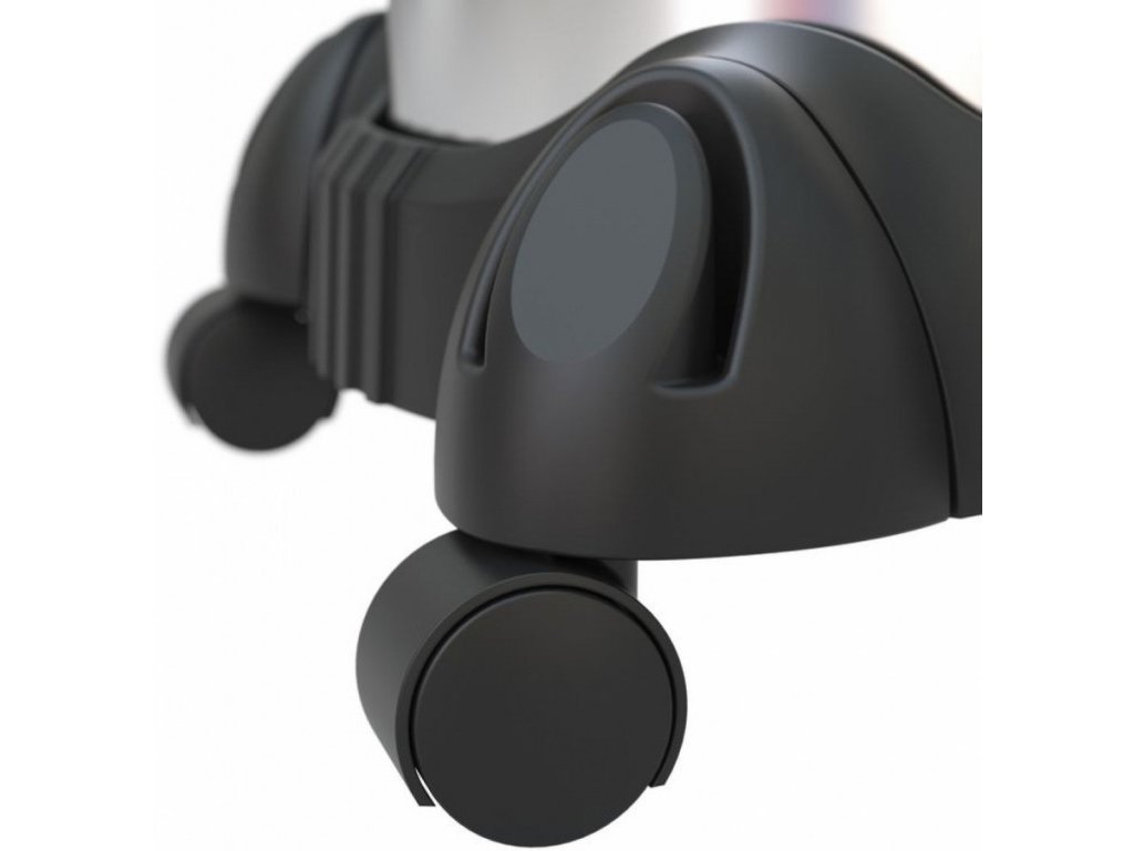 Konstrukce: 3dílná sací trubka, přihrádka pro ukládání příslušenství, ergonomicky tvarované držadlo, robustní podvozek s vodicími kolečky (4).