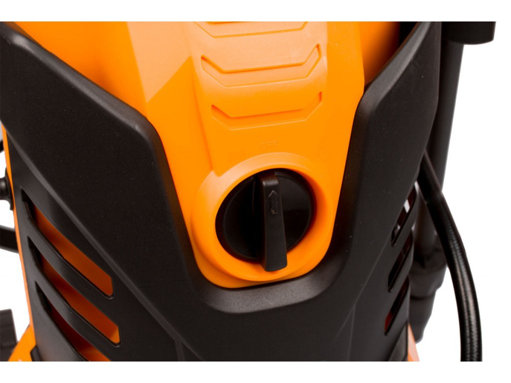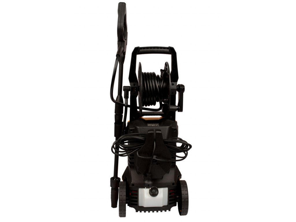 Vysokotlaký čistič je vyroben z kvalitního pevného matného plastu a skládá se z těla vapky, transportního madla s navijákem vysokotlaké hadice, kolečky a vysokotlaké pistole.