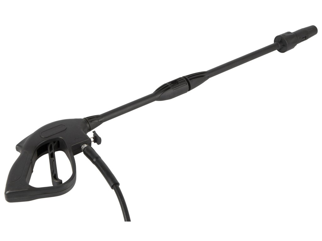 Nastavitelná tryska na konci pistole. Trysku lze otáčením nastavovat na prudký úzký proud vody nebo na jemnější široký proud.