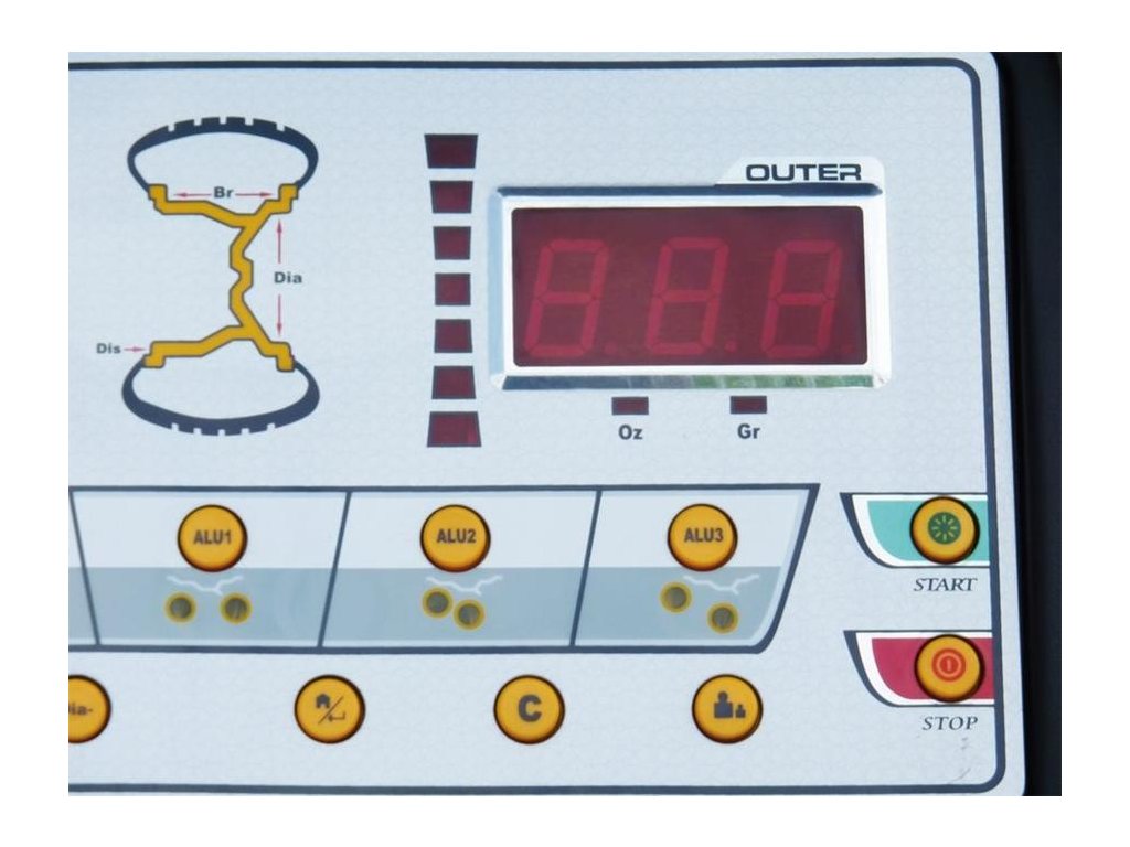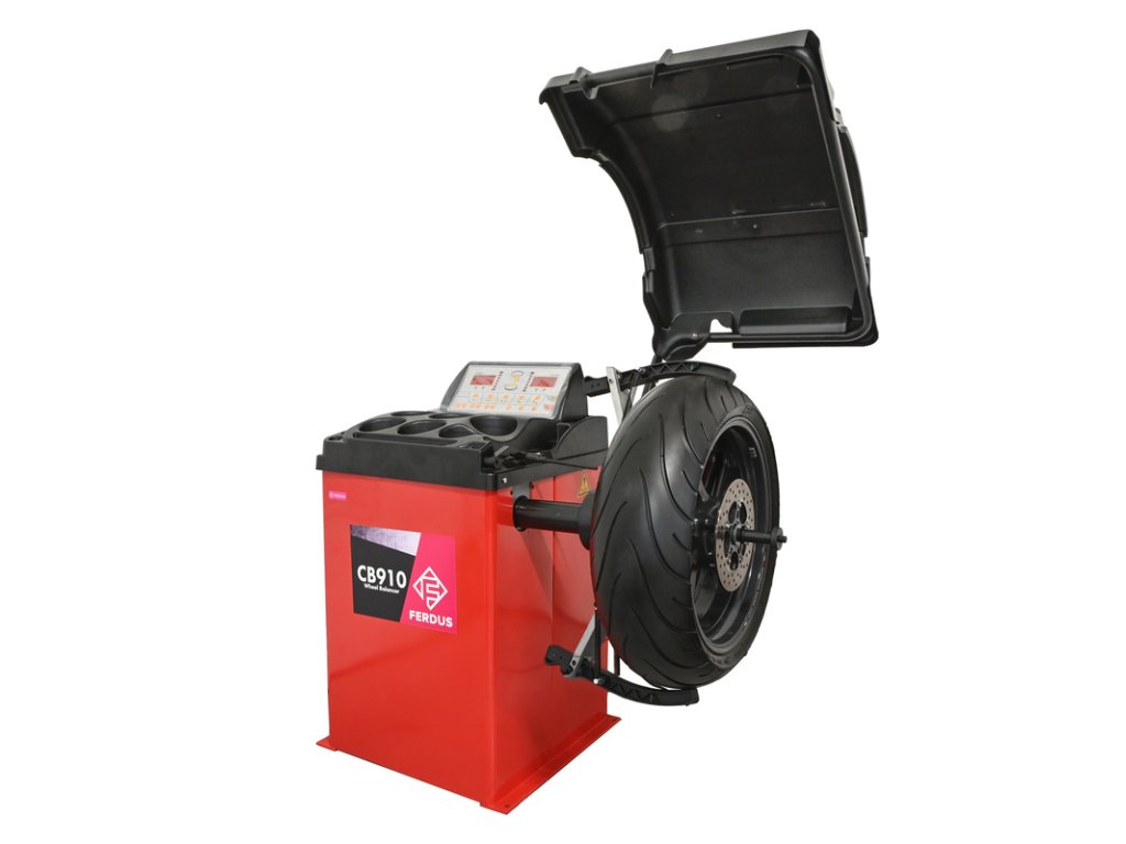 Vyvažovačka kol CB910GB má kompaktní konstrukci s malými rozměry skříně. Na první pohled zaujme velká délka vyvažovací hřídele, která umožňuje pohodlné aplikace závaží i u širokých disků.