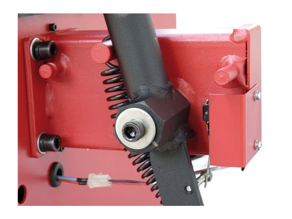 Dobře dimenzovaná vyvažovací hlava s integrovanou vnitřní pružinou. Rozměrný a dobře tvarovaný kryt kola, který dokonale chrání obsluhu je upevněný na robustním závěsu.