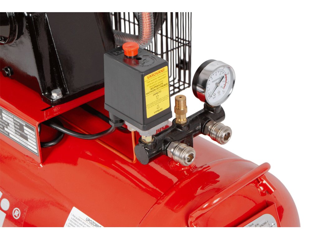 Kompresor dosahuje maximálního pracovního tlaku 8 barů, což pokrývá většinu průmyslových a dílenských potřeb.