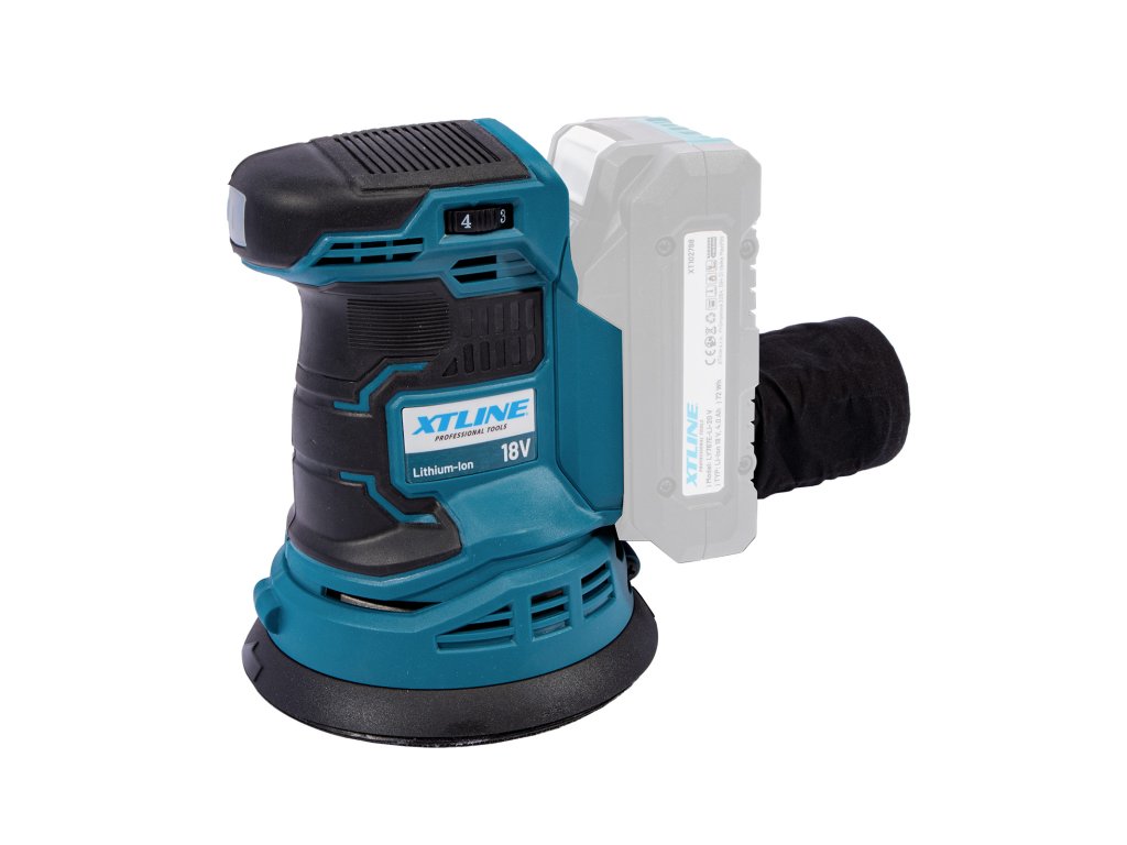 Akumulátorová excentrická bruska má výbornou ergonomickou konstrukci se dvěma plochami s měkkou gumovou tlumící vložkou pro různé možnosti uchopení. Bruska slouží k plošnému broušení různých materiálů, obrušování nátěrů a leštění. Možnost nastavení regulace otáček v 6 stupních. Má protiprachový spínač a osm otvorů v základně k odsávání prachu. Bruska je bez akumulátoru a nabíječky. Nabíječku a samostatný akumulátor je možné dokoupit zvlášť.Doplňkové parametry