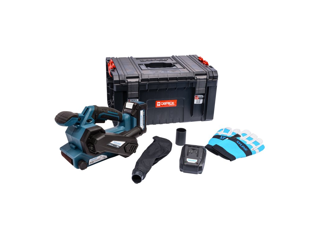 XTLINE Aku pásová bruska 18 V + baterie 5.0 Ah + nabíječka 3.5 A + kufr