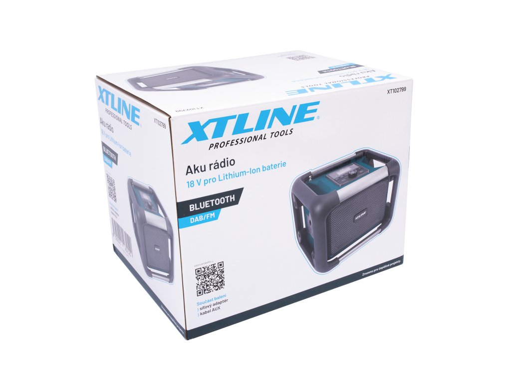 Aku rádio s maximálním výkonem 80 W slouží k přehrávání rádia z běžného, pozemního vysílání (FM/DAB) nebo streamování hudby z externího zdroje. Disponuje Bluetooth 5.3 s dosahem až 30 m a USB portem (5 V/2.1 A) pro nabíjení externích zařízení (např. mobilních telefonů). Poměr signálu ≥85 dBr zajišťuje čistý a kvalitní zvuk. Robustní konstrukce a kvalitní komponenty zajišťují výbornou odolnost. Součástí balení je síťový adaptér a AUX kabel. Rádio lze napájet přiloženým síťovým kabelem (230 V) nebo pomocí 18V baterie XTLINE. Rádio neslouží jako nabíječka 18 V baterií.Doplňkové parametry