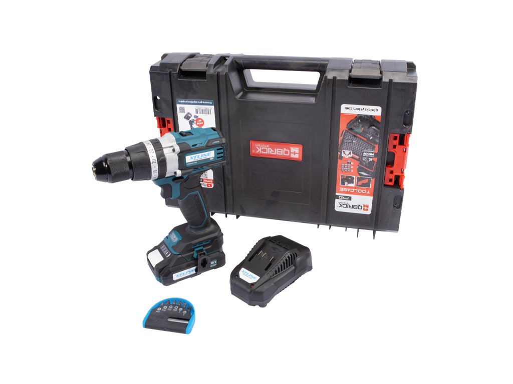 XTLINE Aku vrtačka s příklepem bezuhlíková 18 V, 70 Nm + baterie 2.0 Ah + nabíječka 2.4 A