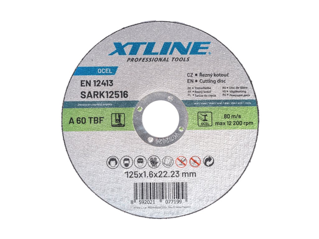 Řezný kotouč vhodný k řezání oceli. Použití kvalitního pojiva a podkladu zaručuje delší životnost. Kotouč je certifikovaný a vyrobený v souladu s bezpečnostními normami.Doplňkové parametry
