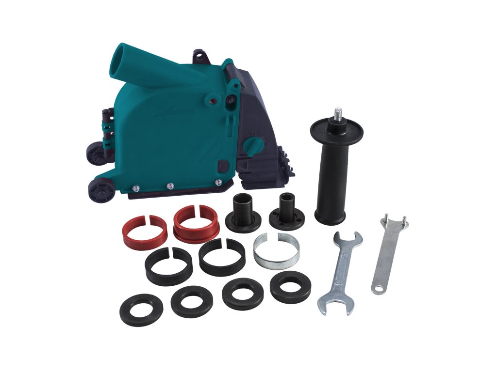 Nástavec k frézování drážek je vhodný pro brusku se závitem M14. Nástavec se velmi jednoduše a snadno montuje. Poskytuje maximální ochranu díky uzavřenému krytu.Výhodou je ergonomická rukojeť, která zajišťuje snadnější a komfortnější práci při frézování, rychlá a snadná výměna kotoučů a nátrubek pro odsávání prachu.Doplňkové parametry