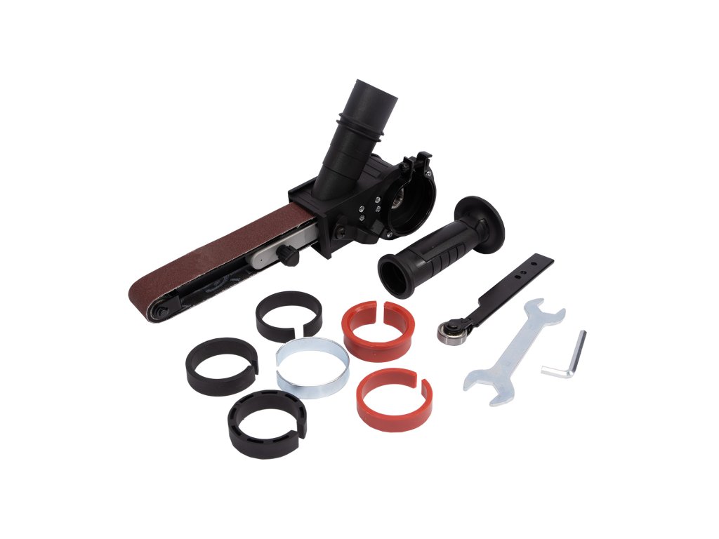 Nástavec na broušení je vhodný pro brusku se závitem M14. Nástavec se velmi jednoduše a snadno montuje. Výhodou je rychlá a snadná výměna brusného pásu a nastavitelný úhel ramene. Úzké rameno umožňuje práci v úzkých prostorech. Možnost připojení odsávání.Doplňkové parametry