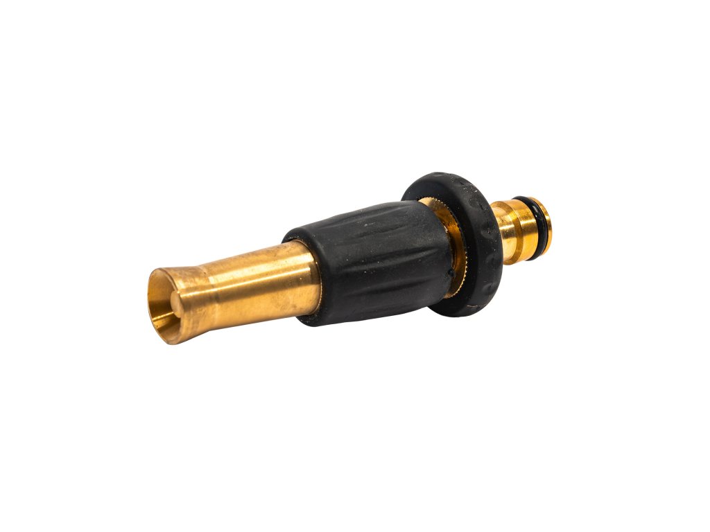 Mosazná postřikovací hubice k hadici se stavitelným průtokem vody.Doplňkové parametry