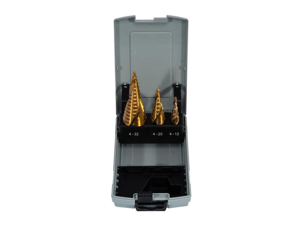 XTLINE Sada stupňovitých vrtáků HSS TiN 3 díly | 4-32 mm, plastový obal