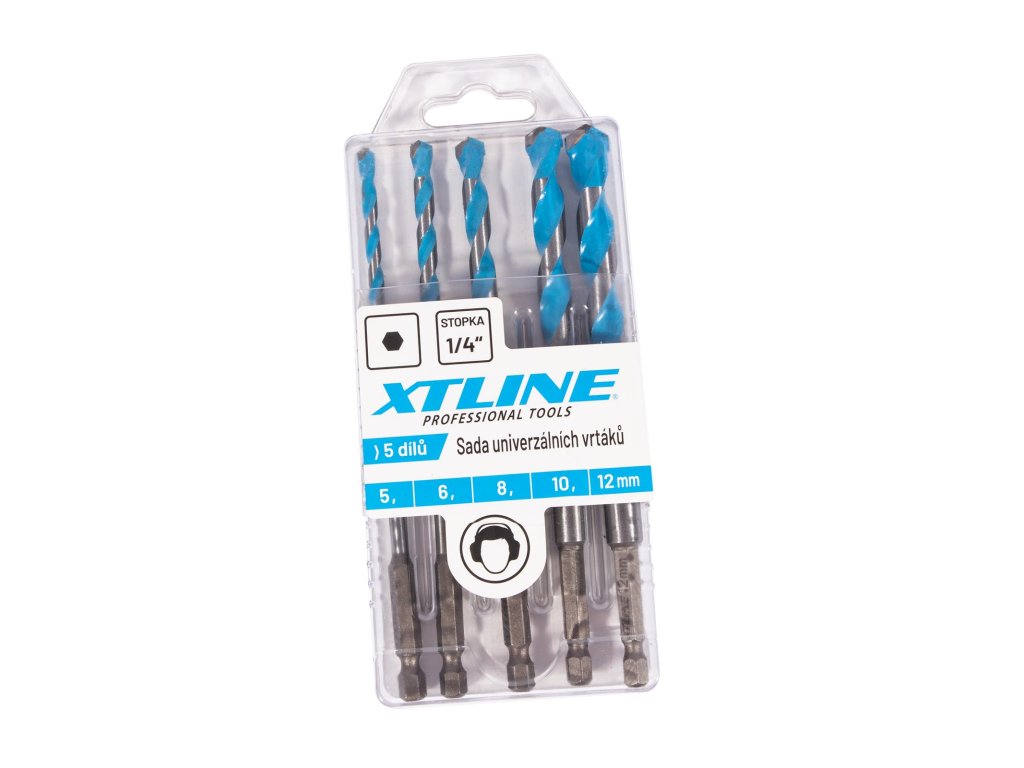 XTLINE Sada univerzálních vidiových vrtáků, šestihranná stopka (1/4") 5 dílů | 5-12 mm, plastový obal