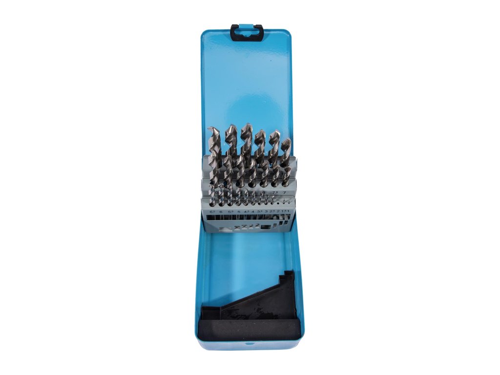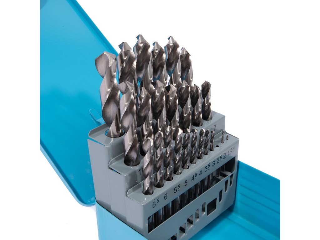 Sada vybrušovaných vrtáků HSS-G z rychlořezné oceli vyrobených dle normy DIN 338 s vrcholovým úhlem 118° pro vynikající kvalitu a přesnost vrtání. Vhodné pro vrtání různých materiálů, jako jsou legovaná i nelegovaná ocel, ocelolitina, temperovaná i tvárná litina, slitiny hliníky, bronz a mnoho dalších materiálů, u kterých hraje hlavní roli přesnost vyvrtaného otvoru. Jednotlivé rozměry vrtáků v sadě jsou odstupňovány po 0,5 mm.Doplňkové parametry