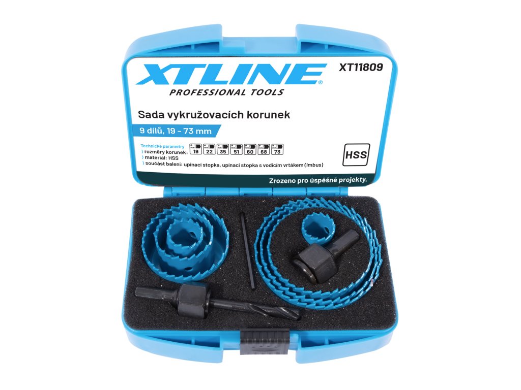 XTLINE Sada vykružovacích korunek 9 dílů | 19-73 mm, plastový box