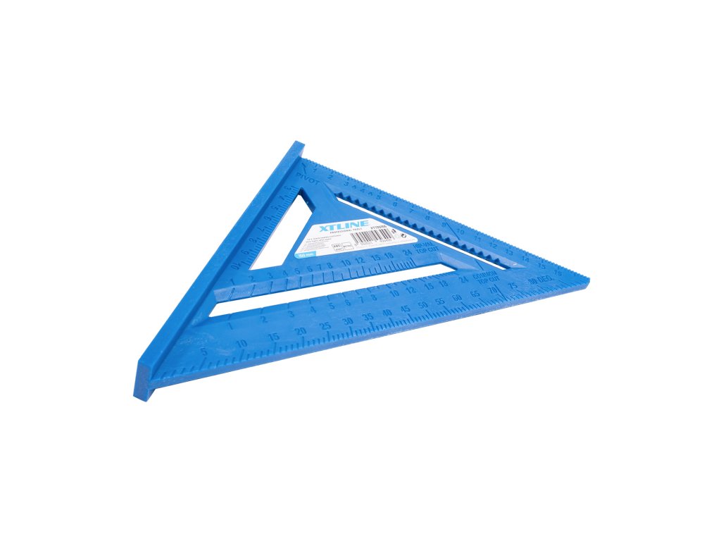 Tesařský úhelník, známý též jako „speed square“, je multifunkční pomůckou pro mnoho řemesel. Kvalitní plast a precizní značení hodnot zajišťují maximální přesnost a odolnost. Úhelník umožňuje rychle a přesně vytyčit úhly 90° a 45°. Díky robustní konstrukci jej lze použít jako praktické vodítko pro kotoučovou pilu při řezání příčných i šikmých řezů nebo pro seřízení pilových kotoučů ve stolních, pokosových pilách apod. Víceúčelovost úhelníku spočívá také ve využití vnitřních zářezů na stupnici pro tužku nebo rýsovací nůž a nabízí tak možnost použít úhelník jako rejsek. Další vlastností je úhloměr pro určení nebo vytyčení běžně používaných úhlů. Nechybí stupnice pro vyměření běžných, nárožních a úžlabních krokví pro tesaře. Úhelník by díky své všestrannosti a praktičnosti neměl chybět ve výbavě žádného kutila ani řemeslníka.Doplňkové parametry