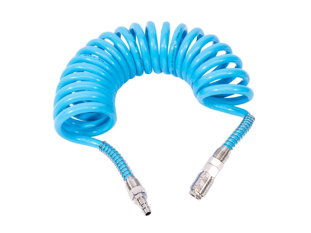 Vzduchová hadice spirálová osazená rychlospojkami pro rychlou a snadnou montáž. Vhodná pro připojení ofukovací pistole a stříkací techniky. Velmi pružný materiál odolný proti prasknutí či zlomení. Spirálový tvar je skladný a praktický při práci. Maximální pracovní tlak hadice je 10 bar.Doplňkové parametry