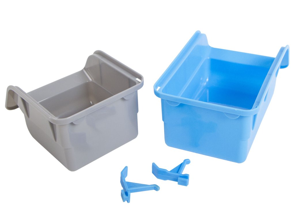 Rozměry boxů jsou (š x h x v): velký 85 x 185 x 75 mm, střední 85 x 135 x 75 mm, malý 85 x 85 x 75 mm.