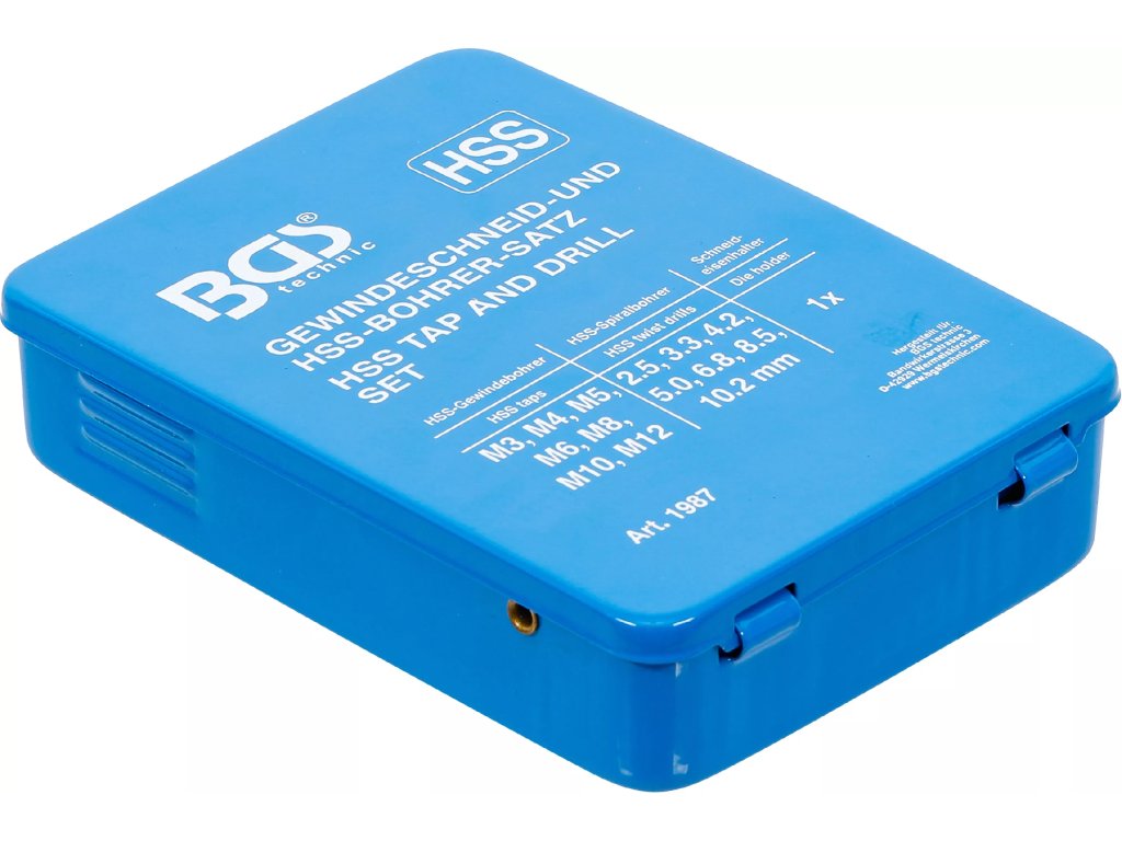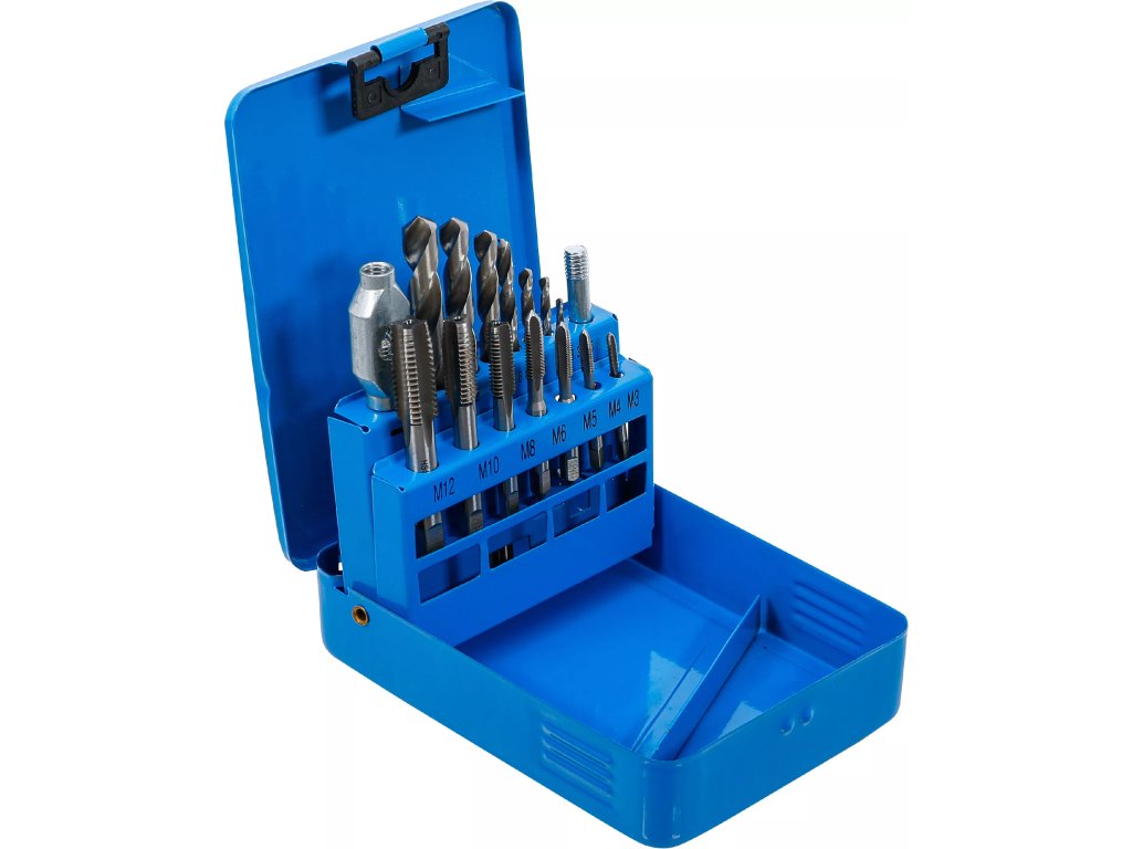 Sada závitníků M3 - M12 s příslušnými vrtáky HSS o průměrech 2,5 - 10,2 mm.