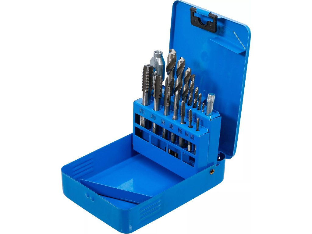 Závitníky M3 - M12 a vrtáky 2,5 - 10,2 mm, 15 ks - B1987