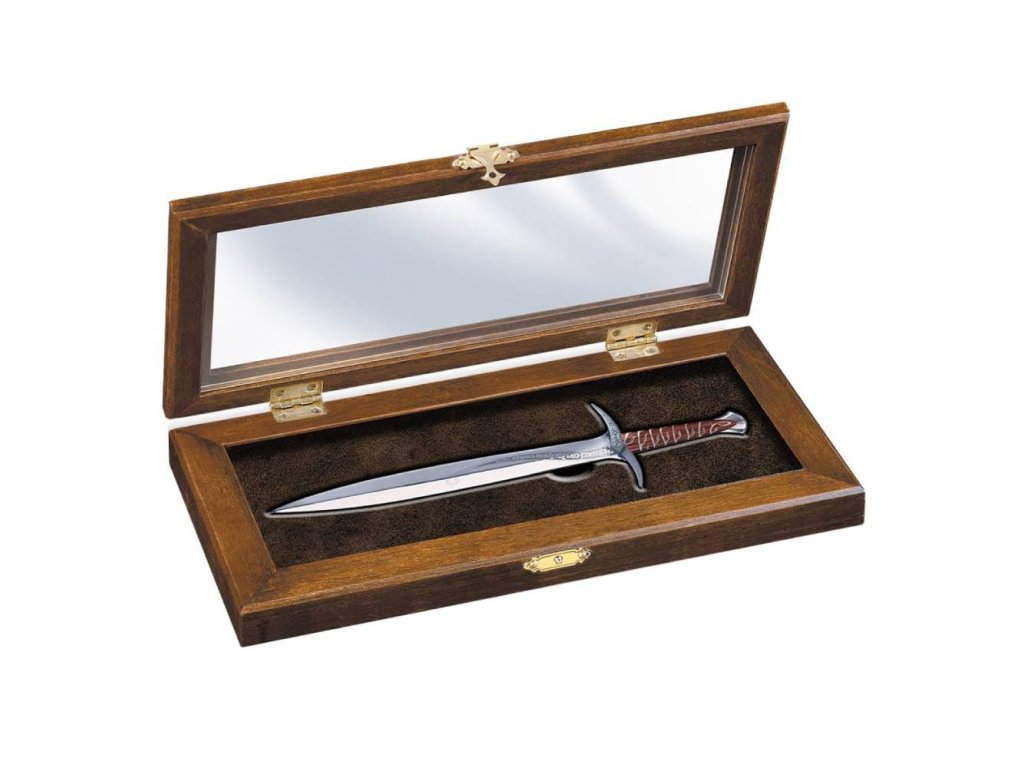 Jeho ostří mírně zářilo, když se nablízku nacházeli skřeti. Později pak Bilbo daroval Žihadlo svému synovci Frodovi. Zmenšená replika Bilbova meče - Žihadla z filmu Pán prstenů. Žihadlo byl původně elfský nůž, ukovaný v Prvním věku v Gondolinu, svou velikostí však hobitovi posloužil jako krátký mečík. Nůž je dlouhý 19,5 cm, součástí je dřevěná krabička (25 x 9 x 3 cm). Velice věrná replika, která potěší všechny fanoušky Pána prstenů.Doplňkové parametry