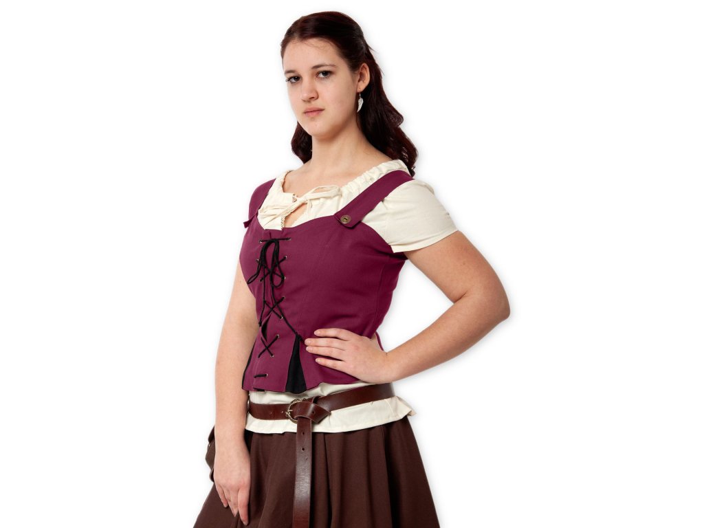 Jednoduchý vypasovaný živůtek ve vínové barvě, opatřený předním i zadním šněrováním. Šikovný doplněk k ženskému kostýmu, který dodá historickému kostýmu šmrnc. S vhodnou blůzou a sukní vytvoříte parádní komplet na jakoukoli akci. Pro příjemné nošení je živůtek vypodšívkovaný bavlněným plátnem. Více o použitém materiálu se dočtete zde: popis materiálů.Buďte první, kdo napíše příspěvek k této položce.