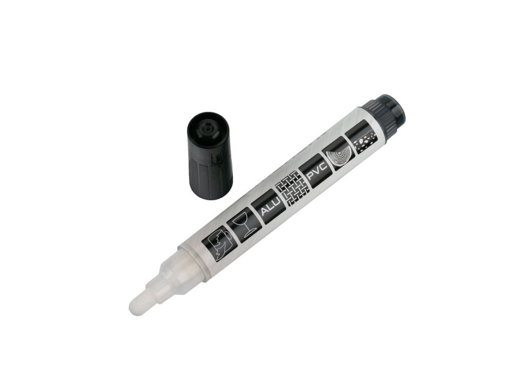 - vhodný pro popisy železných konstrukcí, skla, plastů, černých strečových folií atd..