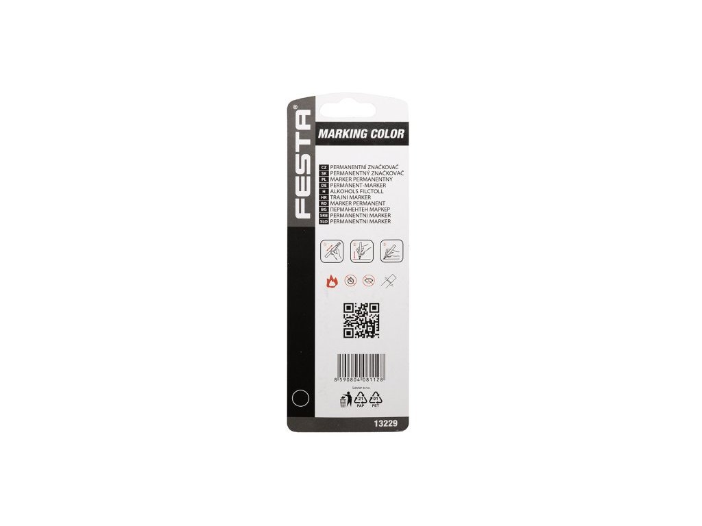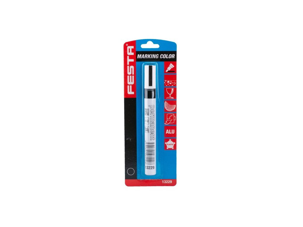 Speciální značkovací barva v hliníkovém pouzdře, síla hrotu 4 mm - černý, popisy železných konstrukcí, skla, plastů, černých strečových folií a tmavých podkladů, max.80°C.Doplňkové parametry
