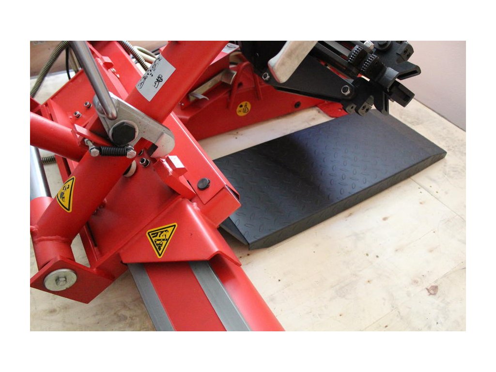 Montážní hydraulicky ovládaný palec má promyšlený tvar, který zabraňuje poškození pláště. Převlékání patek přes raménko ráfku je jednoduché a ve většině případů nevyžaduje použití ruční montážní páky. Odtlačování patek plášťů je zajištěno konstrukčně propracovaným mechanismem s talířovou kladkou. Záměna nástrojů se provádí ručně bez nutnosti vynaložení fyzické námahy.