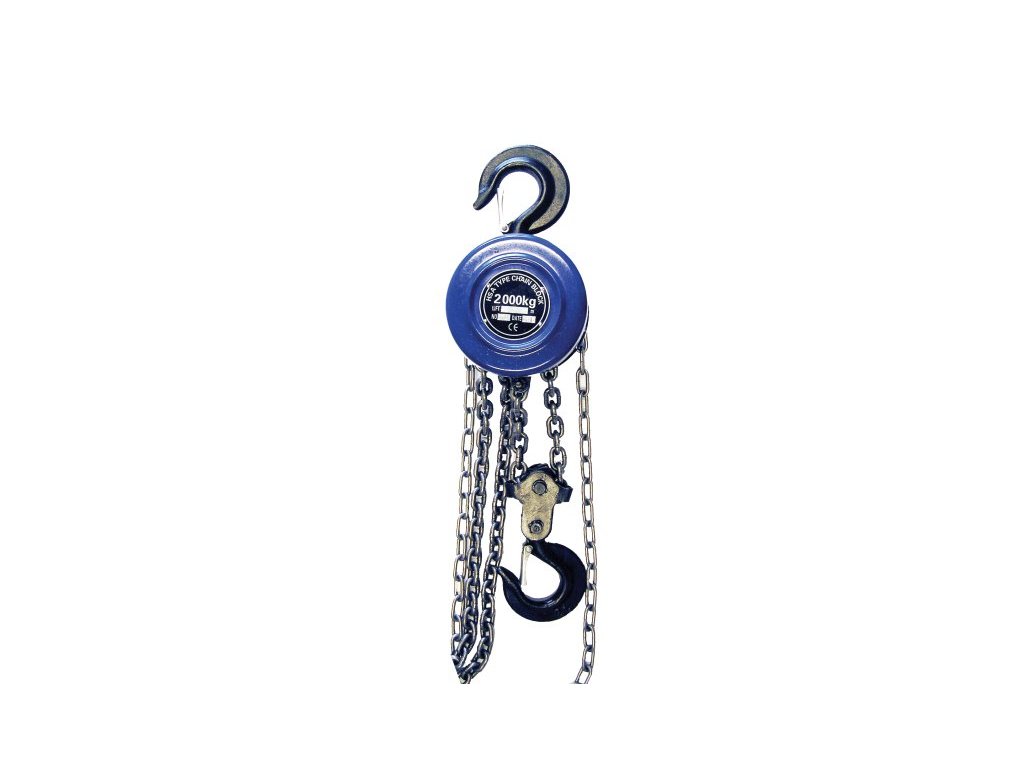 Řetězový zvedák s nosností 2000 kg je určen na zvedání těžkých břemen, jako jsou součásti osobních a nákladních automobilů (např. převodovky, motory) až do výšky 3 metry ve svislém směru. Velmi jednoduché použití a zvedání díky kladce a malé hmotnosti zvedáku. Sílu v tahu drží masivní 6 milimetrů silný řetaz. Tyto řetězové zvedáky jsou vhodné do garáží, autodílen a servisů, zkrátka kdekoliv, kde je potřeba zvedat objemná a těžká břemena. Před použitím zvedáku se vždy ujistěte o jeho správné funkci a během zvedání zajistěte, aby se pod zvedaným břemenem nikdo nepohyboval. Řetězové zvedáky se taktéž často nazývají kočky nebo řetězové kladkostroje. Nosnost 2000kg. Zdvih 2,5 m. Počet kladek 2. Síla řetězu 6 mm.Doplňkové parametry
